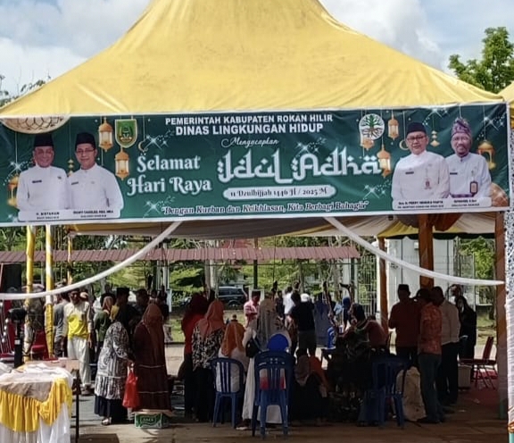 Kegiatan penyembelihan hewan kurban tersebut digelar pada Minggu, 8 Juni 2025, bertempat di halaman kantor Dinas Lingkungan Hidup, Jalan Kecamatan Batu 6 Bagansiapiapi.