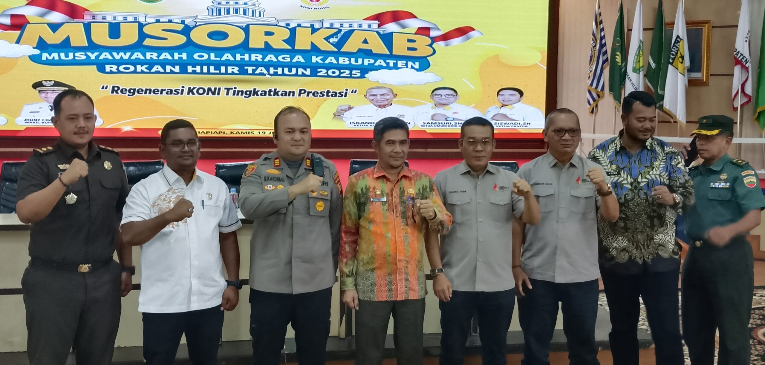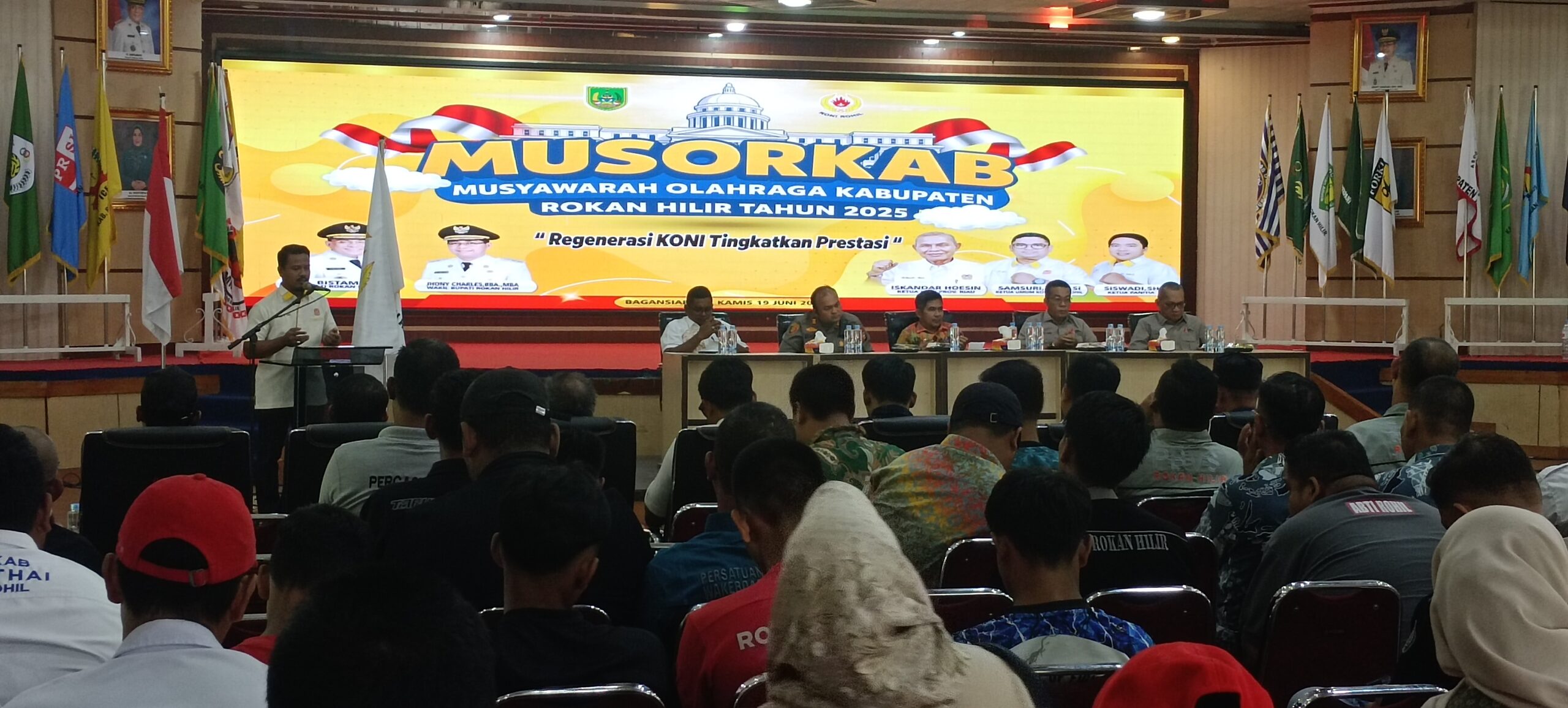 Rokan hilir :(koboatines.com)Gedung Pertemuan H Misran Rais menjadi saksi bergulirnya Musyawarah Olahraga Kabupaten (Musorkab) KONI Rokan Hilir (Rohil) 2025 yang digelar Kamis (19/6/2025). Kegiatan ini menjadi tonggak penting dalam upaya regenerasi kepengurusan dan peningkatan prestasi olahraga daerah