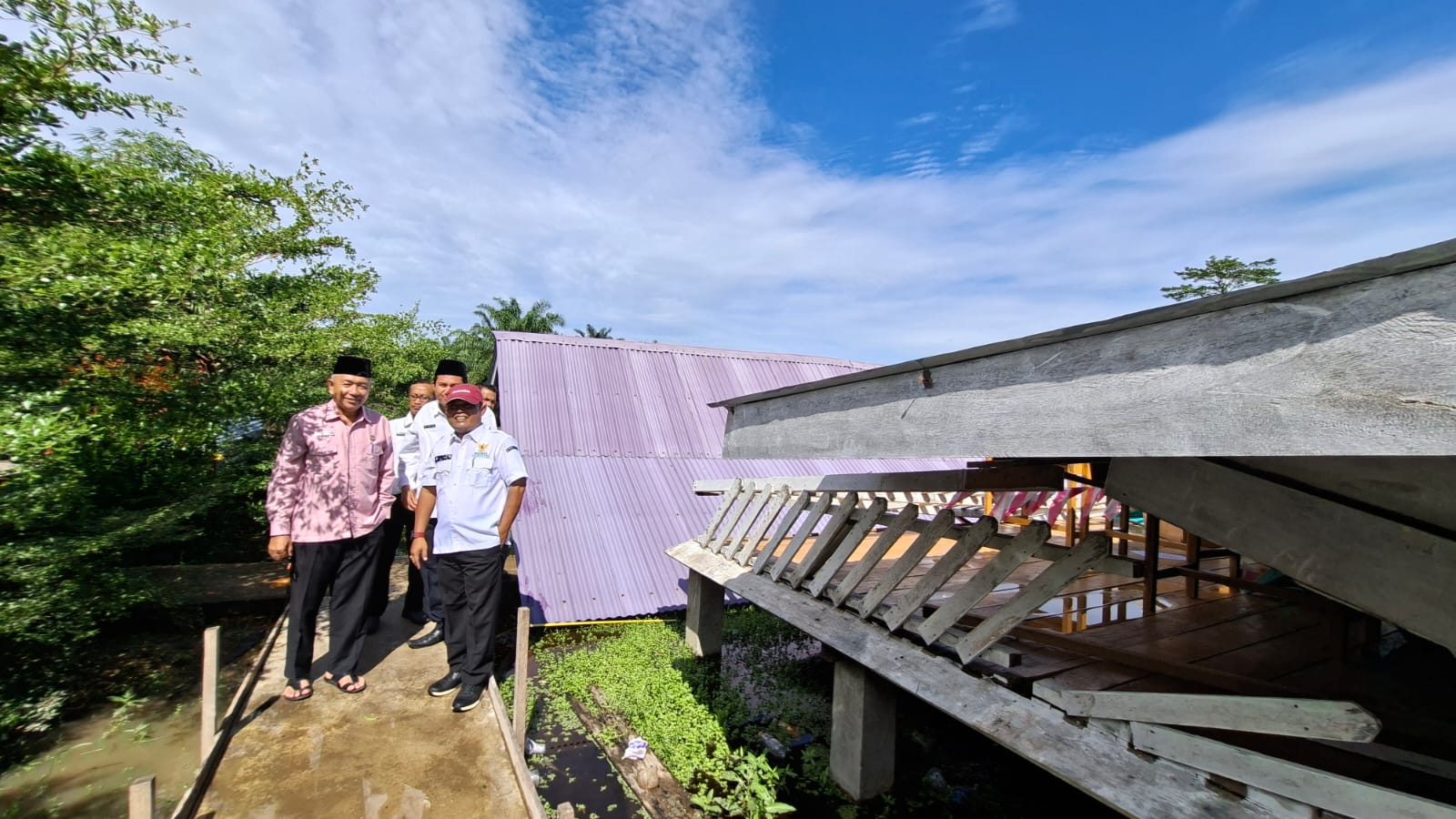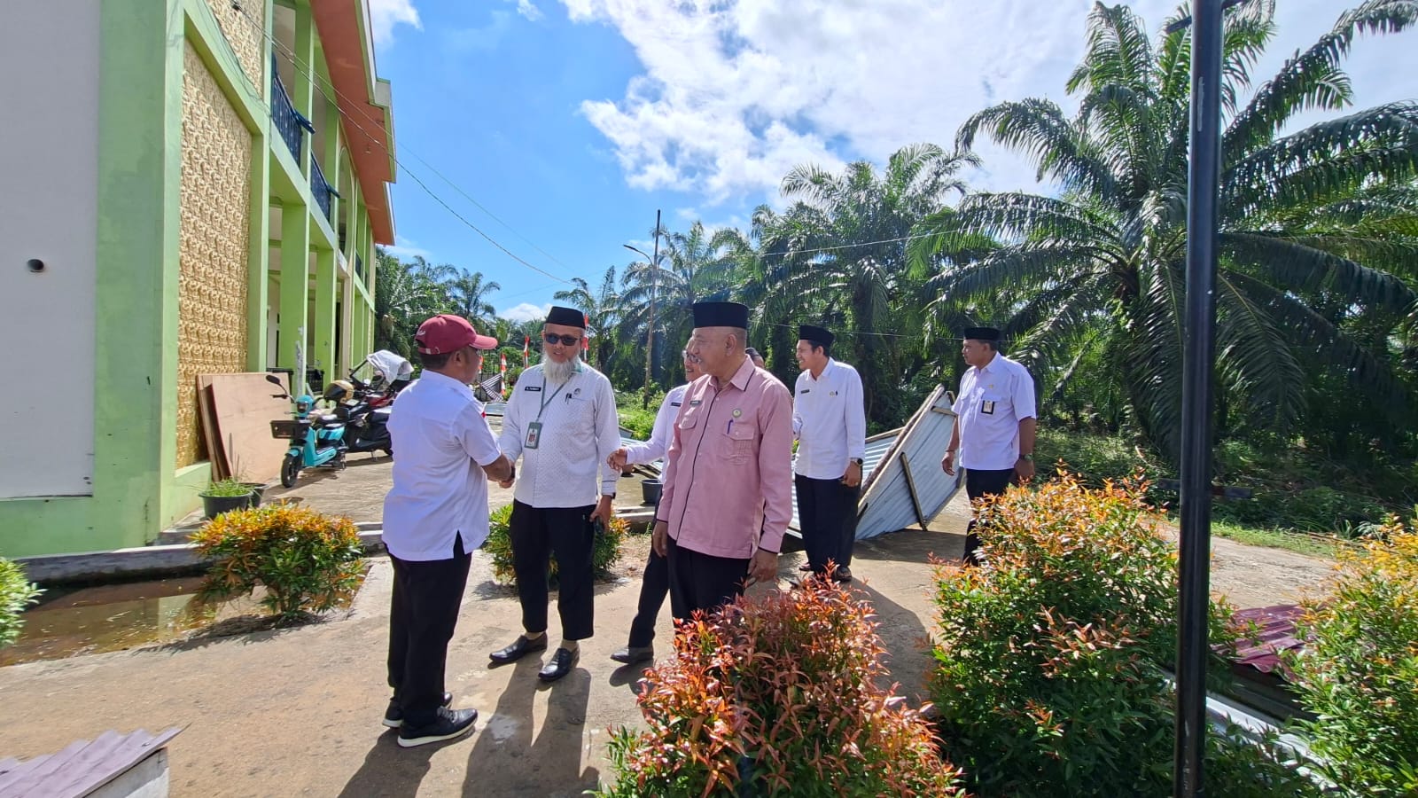 Bagansiapiapi-Kobkatimes.com-Ketua Baznas Kabupaten Rokan Hilir H. Jefrizal, S.H.I, MM bersama Kepala Kantor Kementerian Agama Kabupaten Rokan Hilir H. Khairul, S.Ag didampingi para Kasi Kemenag melakukan kunjungan ke Pondok Pesantren Darul Muqomah Bagansiapiapi yang menjadi korban bencana angin puting beliung pada Senin, 6 Oktober 2025.