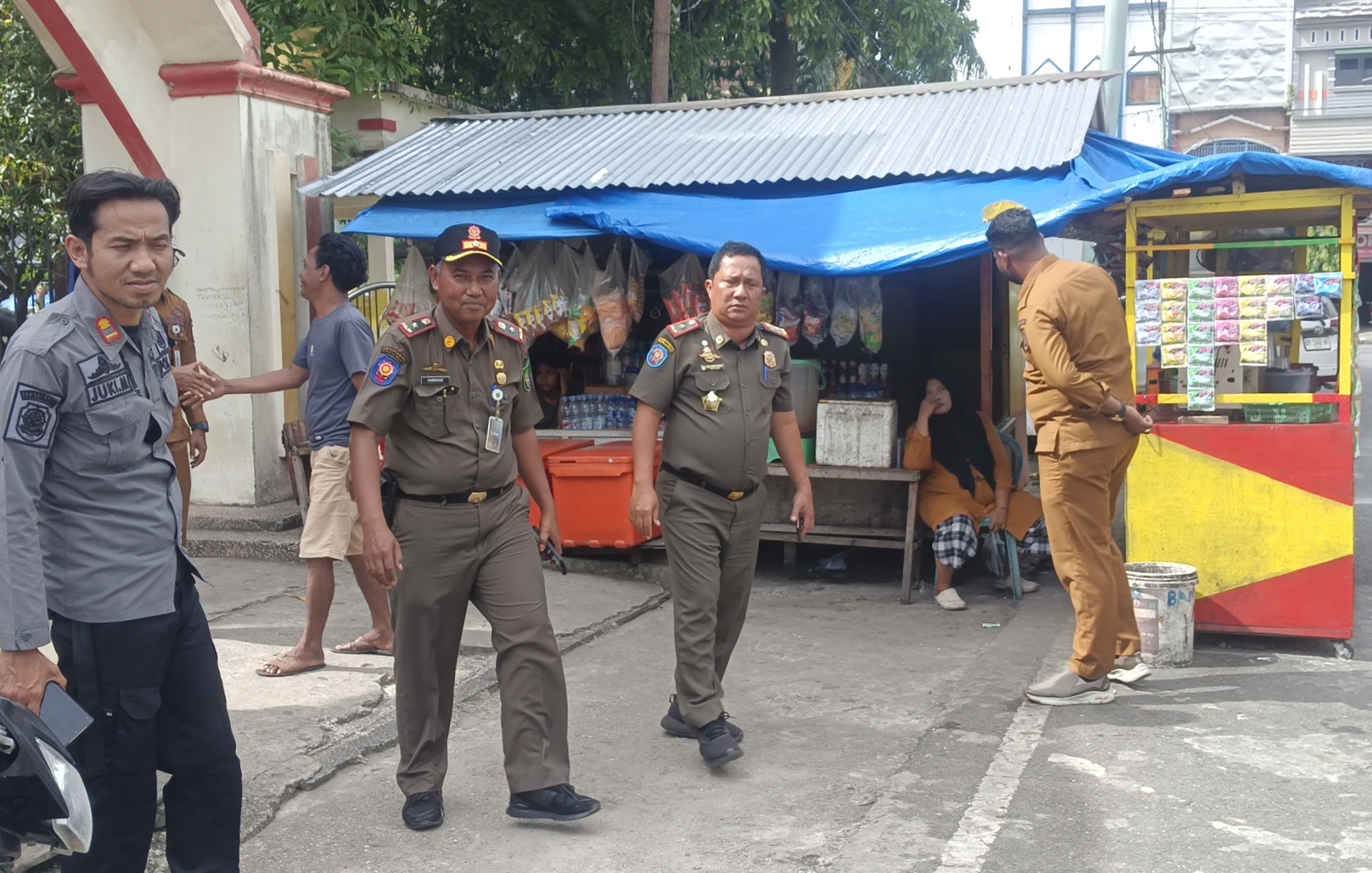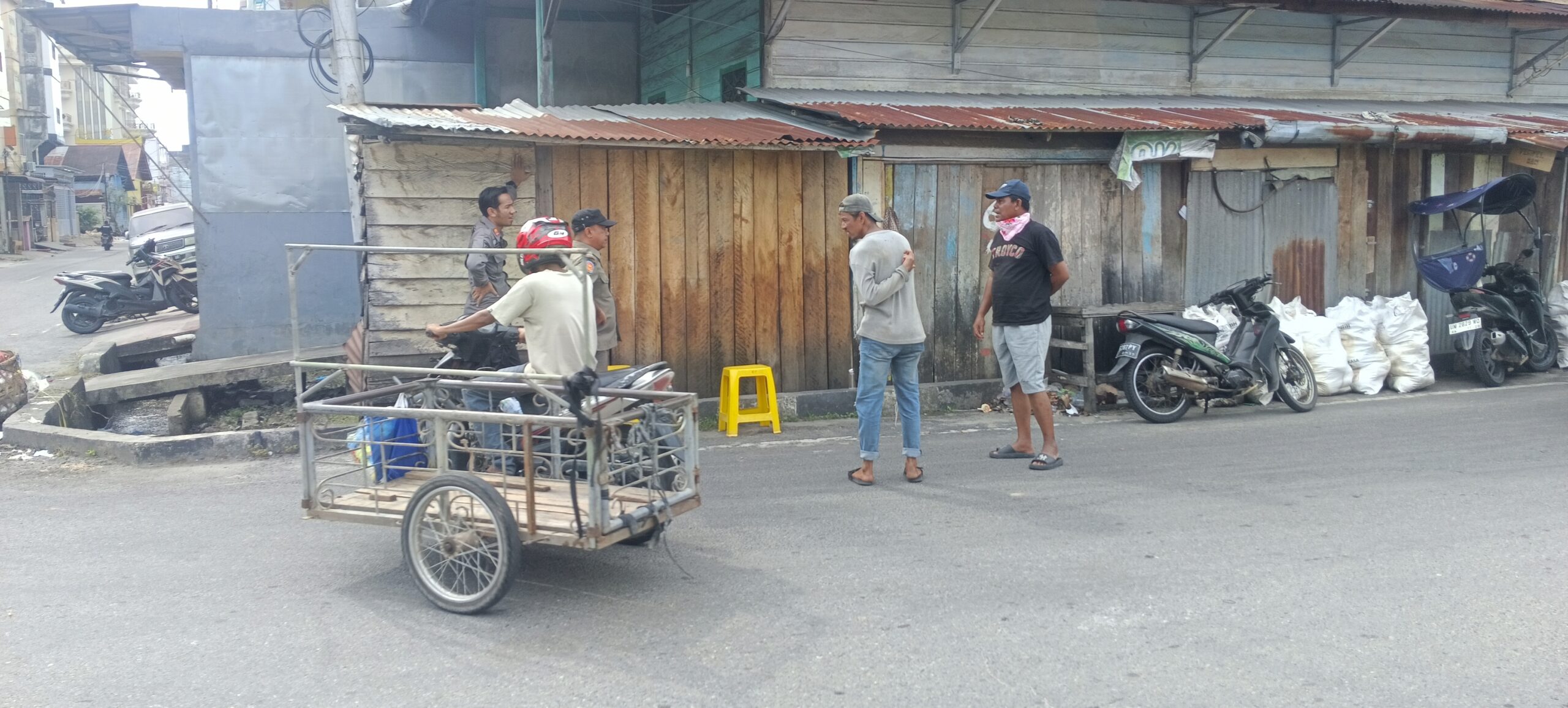 Bagansiapiapi-kobkatimes.com kasatpol PP Acil Rusdianto bersama camat Bangko aspri mulya melaksanakan sosialisasi di semua pedagang yang berjualan di sepanjang Trotoar atau bahu jalan di sekitar di kecamatan Bangko.