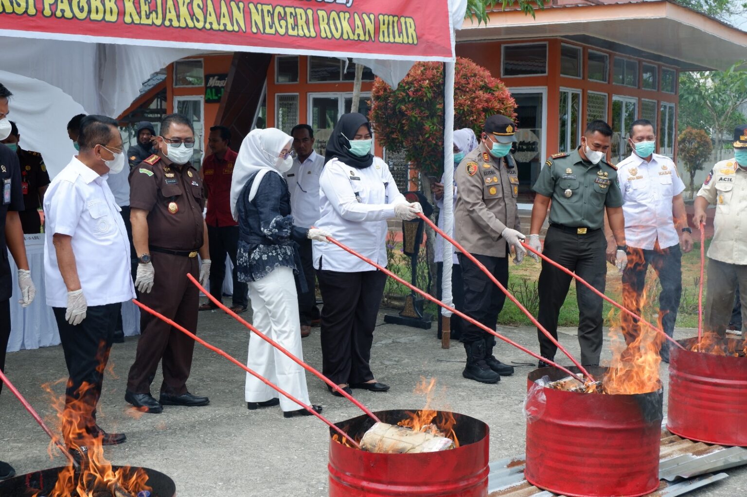 Pemusnahan barang bukti tersebut dihadiri langsung oleh Plt Kepala Lapas Bagansiapiapi, Nimrot Sihotang, yang turut menyaksikan jalannya kegiatan bersama unsur aparat penegak hukum lainnya. Beliau juga didampingi oleh Kepala Subseksi Registrasi, Febri Resmalia, sebagai perwakilan dari jajaran Lapas.