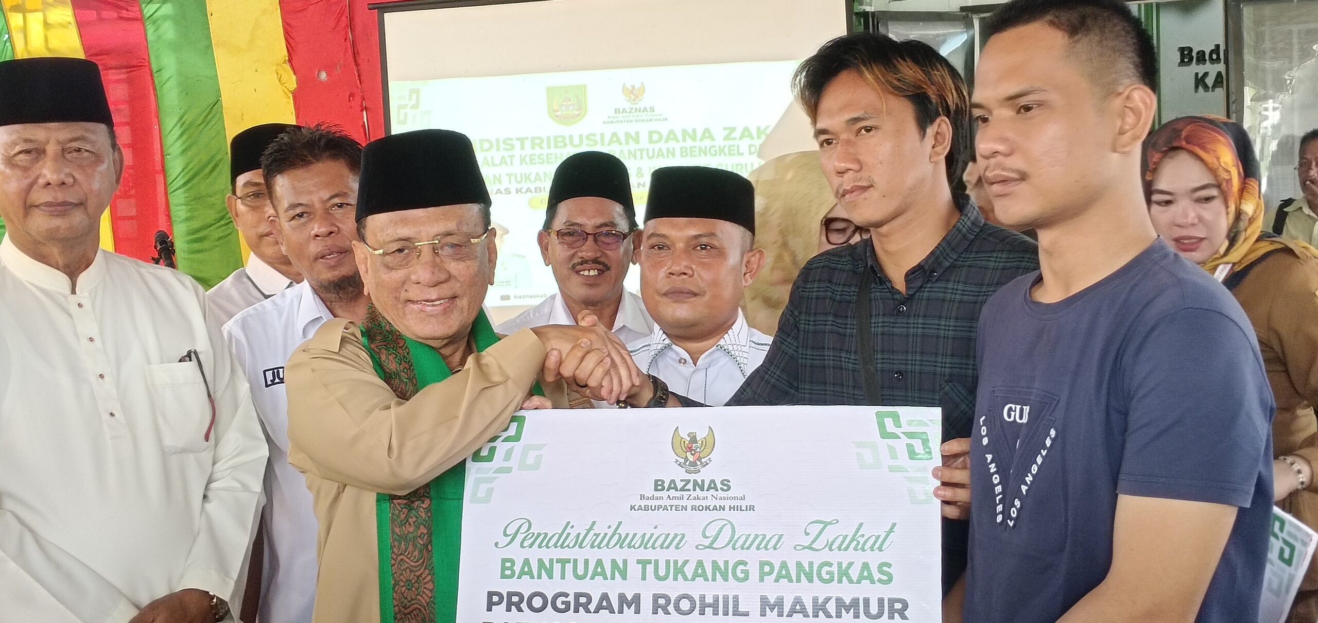 Hadir dalam acara tersebut Bupati Rokan Hilir datuk sri setia amanah Bistamam, mantan Bupati pada masanya H. Suyatno, semua rohil fauzi, kadis disdik muhammad Nur hidayat, kadis kesehatan, kementrian agama, kadis dinsos dan para penerima bantuan beserta seluruh anggota Baznas yang hadir.